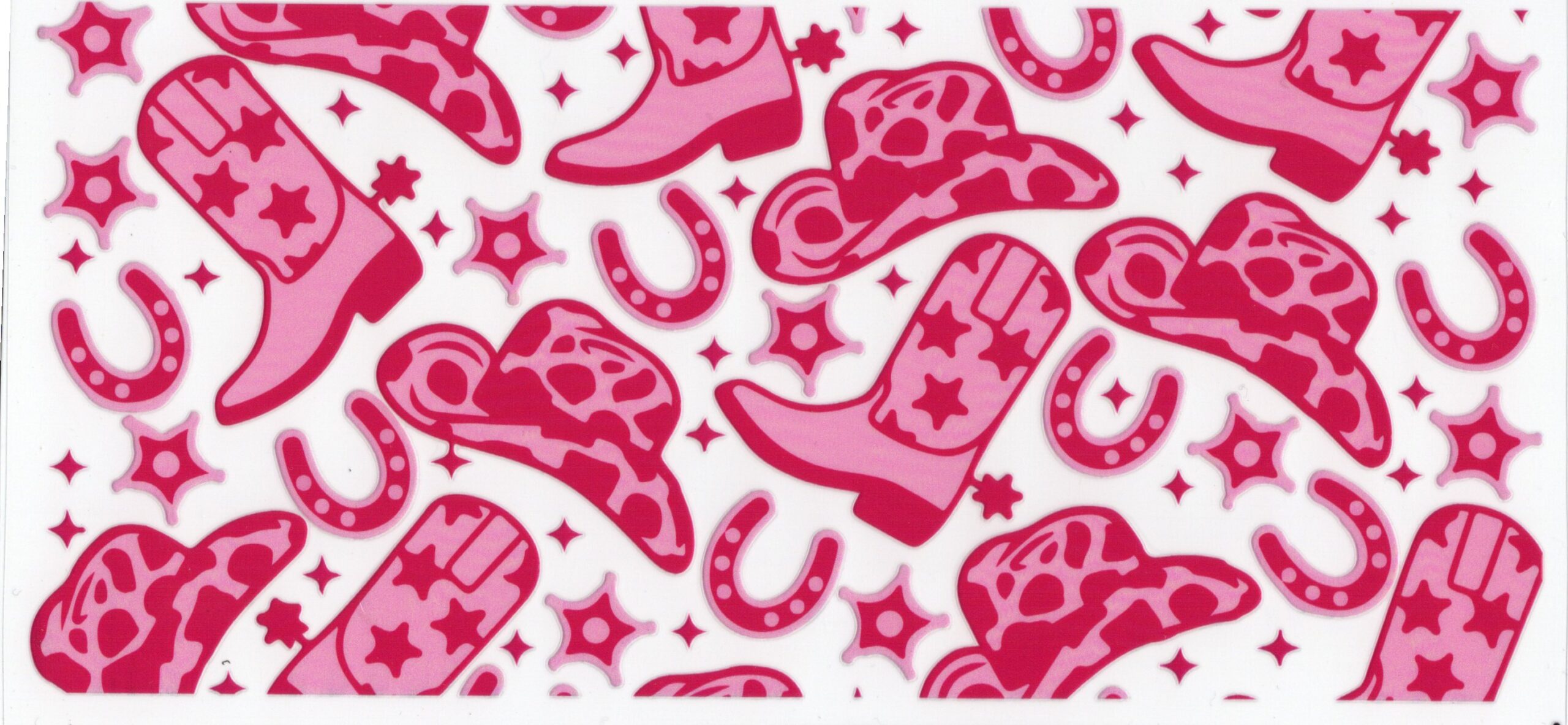 Cowgirl Boots and Hats Pink 16oz UV DTF Wrap