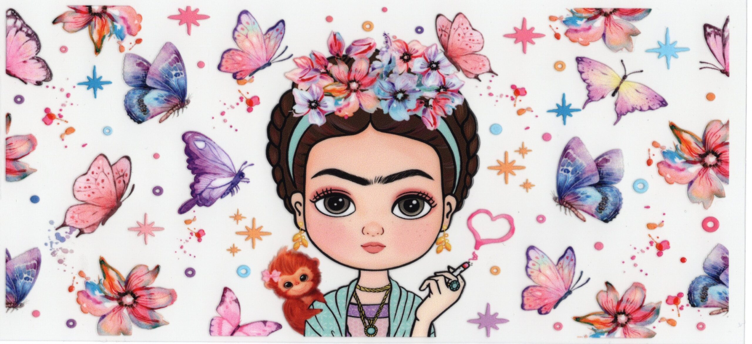 Frida Inspired with Butterflies 16oz UV DTF Wrap