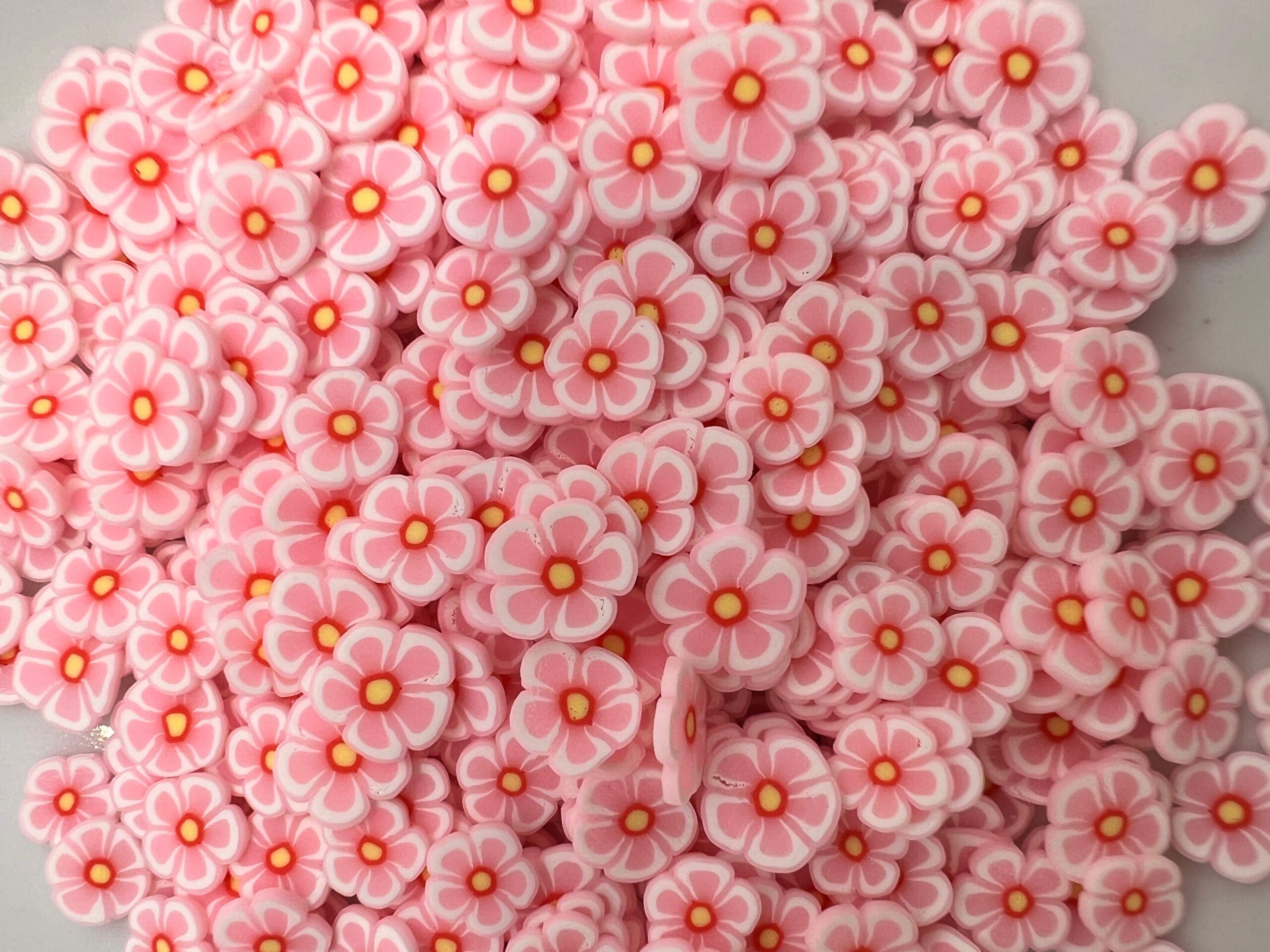 Petal Pink Sparkles: 5mm Clay Pink Flower Slices